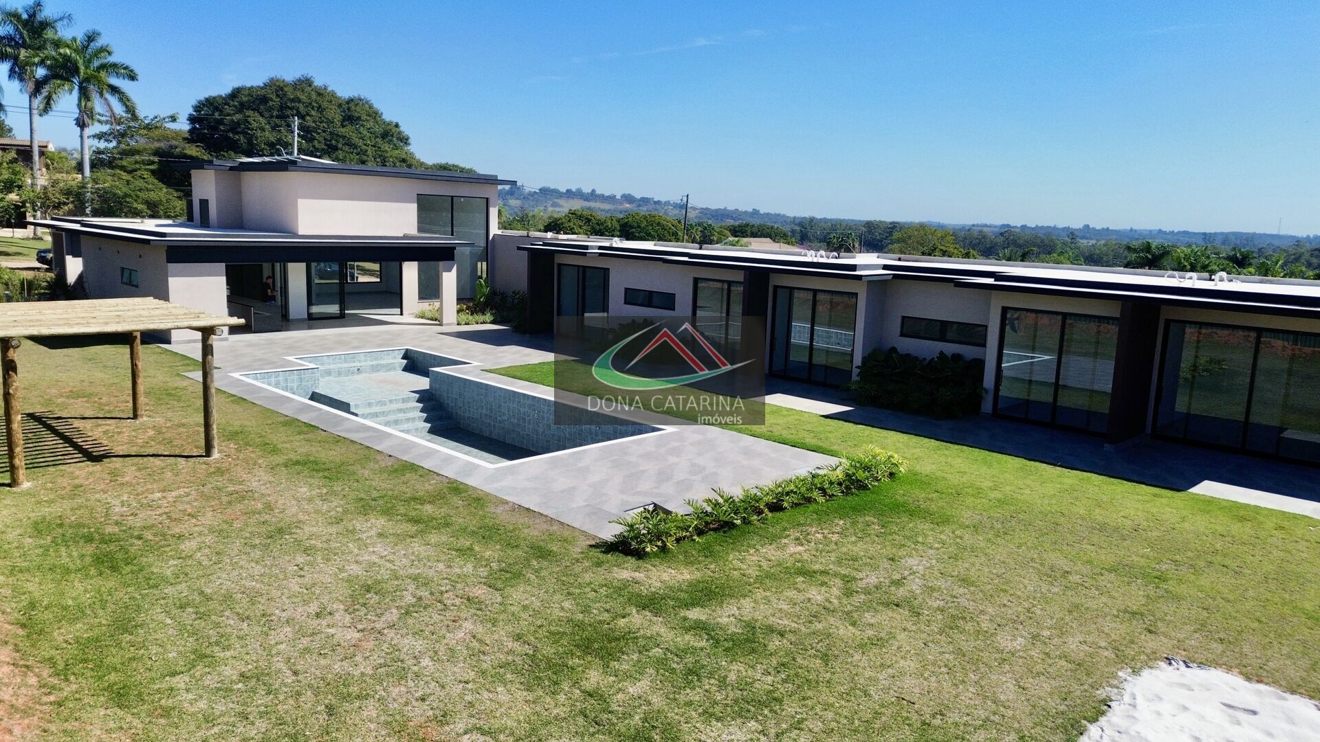 🔹 Piscina com prainha, pergolado