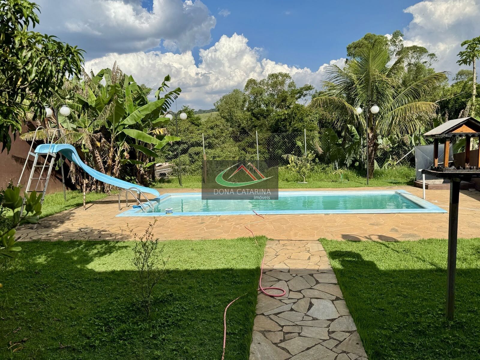ChurrasqueiraCozinha americanaForno à lenhaGramadoMuradoPermite animaisPiscina